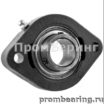 Корпусные подшипниковые узлы в овальном фланцевом исполнении состоят из овального корпуса, изготовленного из серого чугуна, нержавеющей стали или термопластика и снабженного специальным подшипником для корпусных узлов имеющим сферическое наружное кольцо. При монтаже корпусных подшипниковых узлов в парах, эта конструктивная особенность позволяет компенсировать угловой перекос вала или неточность монтажа. Узлы с овальным фланцем являются обслуживаемыми, подшипник может быть смазан через специальный фиттинг (тавотницу) консистентной смазкой.