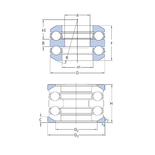 Двойные упорные подшипники предназначены для восприятия двунаправленных осевых (аксиальных) нагрузок и состоят из одного тугого кольца, расположенного между двух комплектов сепараторов с телами качения (шариками) и двух свободных колец.