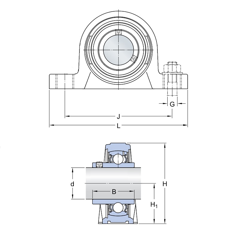 Корпусной подшипниковый узел на лапах состоит из корпуса выполненного из термопластика и снабжен специальным подшипником для корпусных узлов имеющим сферическое наружное кольцо. При монтаже корпусных подшипниковых узлов в парах эта конструктивная особенность позволяет компенсировать угловой перекос вала или неточность монтажа. Узлы на лапах являются обслуживаемыми, подшипник может быть смазан через специальный фиттинг (тавотницу) консистентной смазкой. Корпусной узел комплектуется на выбор: подшипником из подшипниковой стали, нержавеющей стали или корозионностойком исполнении.