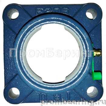Корпусной подшипниковый узел в квадратном фланцевом исполнении состоит из квадратного корпуса, выполненного из серого чугуна, нержавеющей стали или термопластика и снабжен специальным подшипником для корпусных узлов имеющим сферическое наружное кольцо. При монтаже корпусных подшипниковых узлов в парах, эта конструктивная особенность позволяет компенсировать угловой перекос вала или неточность монтажа. Узлы c квадратным фланцем являются обслуживаемыми, подшипник может быть смазан через специальный фиттинг (тавотницу) консистентной смазкой.