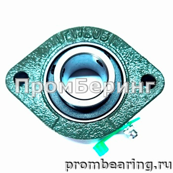 Корпусные подшипниковые узлы в овальном фланцевом исполнении состоят из овального корпуса, изготовленного из серого чугуна, нержавеющей стали или термопластика и снабженного специальным подшипником для корпусных узлов имеющим сферическое наружное кольцо. При монтаже корпусных подшипниковых узлов в парах, эта конструктивная особенность позволяет компенсировать угловой перекос вала или неточность монтажа. Узлы с овальным фланцем являются обслуживаемыми, подшипник может быть смазан через специальный фиттинг (тавотницу) консистентной смазкой.