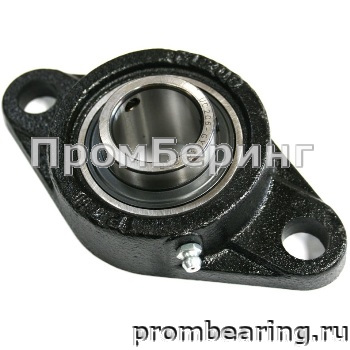 Корпусные подшипниковые узлы в овальном фланцевом исполнении состоят из овального корпуса, изготовленного из серого чугуна, нержавеющей стали или термопластика и снабженного специальным подшипником для корпусных узлов имеющим сферическое наружное кольцо. При монтаже корпусных подшипниковых узлов в парах, эта конструктивная особенность позволяет компенсировать угловой перекос вала или неточность монтажа. Узлы с овальным фланцем являются обслуживаемыми, подшипник может быть смазан через специальный фиттинг (тавотницу) консистентной смазкой.
